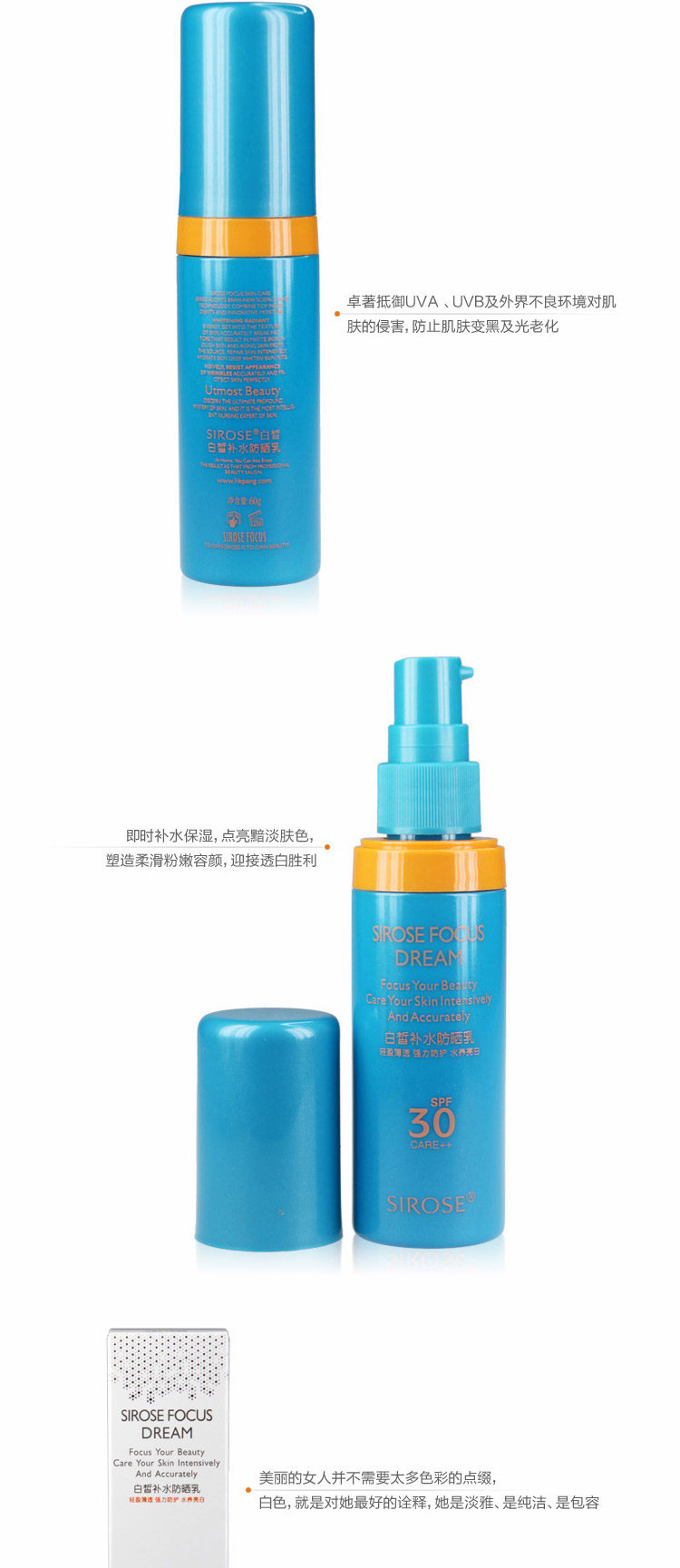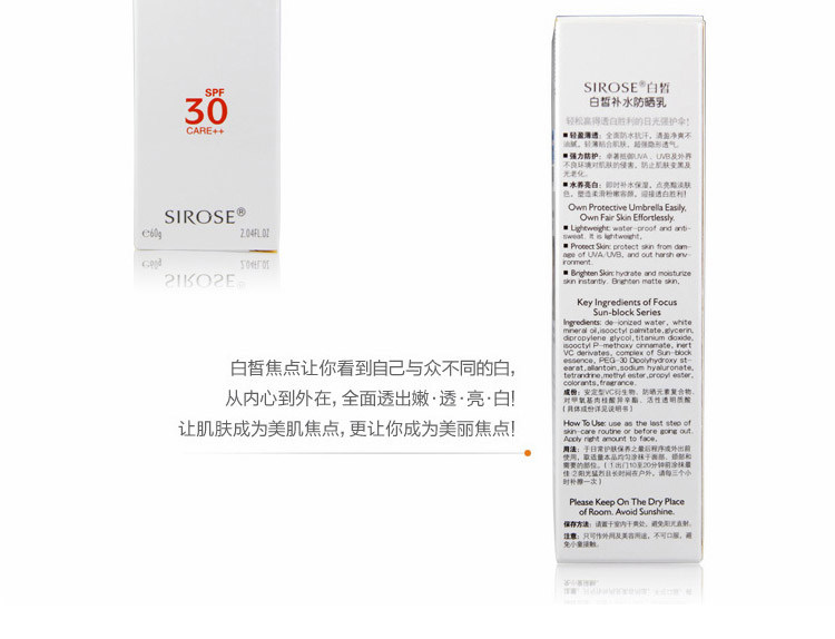 SIROSE白皙焦点补水防晒乳60g SPF30 保湿美白隔离 抗汗清爽