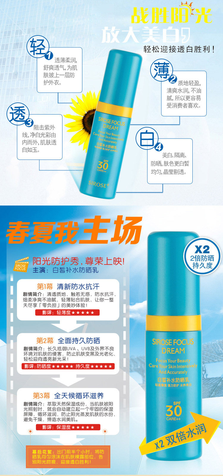 而且防晒时间持久,效果强劲。